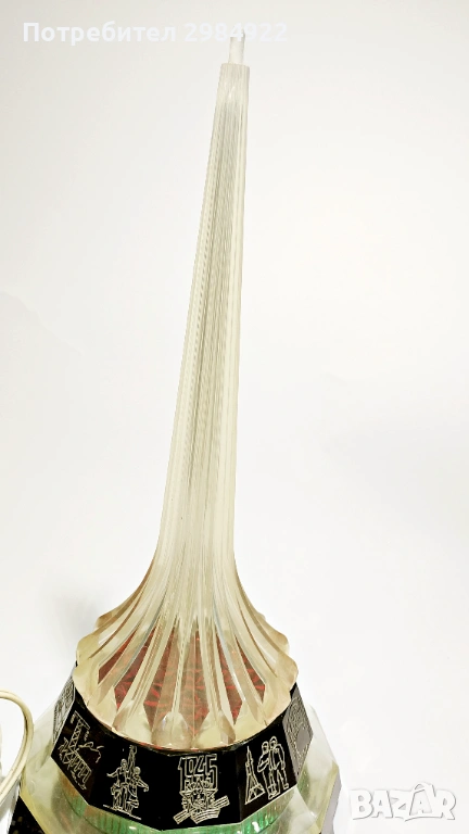 Характеристики: Прозрачен връх, наподобяващ шпил или ракета, с червена вътрешност и декоративна основа.