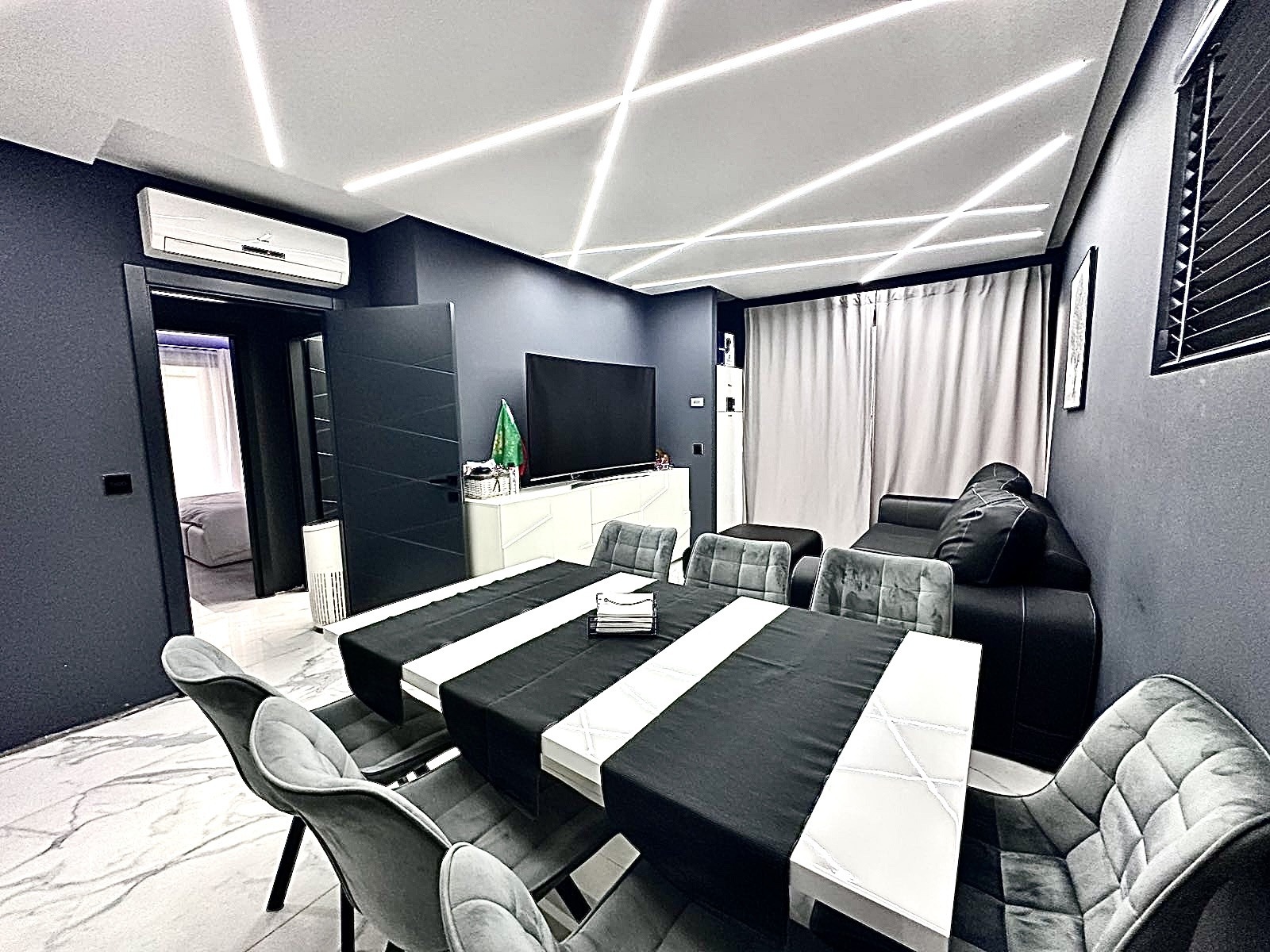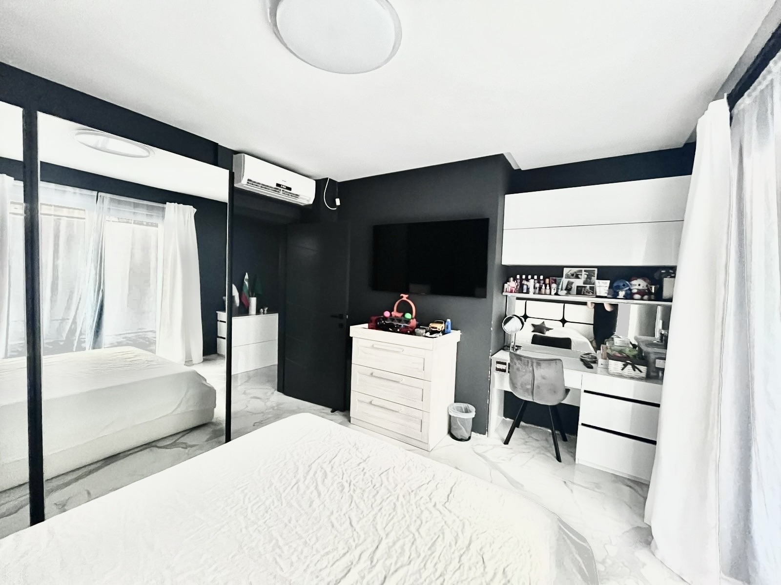 Имотът е изпълнен по индивидуален дизайнерски проект, с внимание към всеки детайл и използвани висок клас материали, съчетаващи комфорт, стил и функционалност.