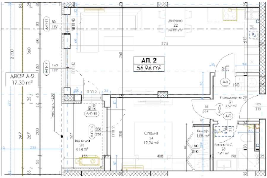 Прилежащ двор: 17,30 кв.м ( включен в цената)