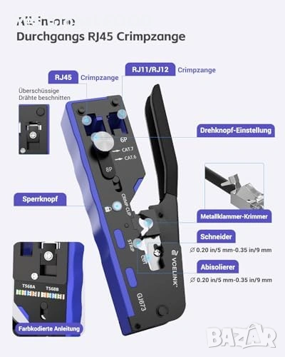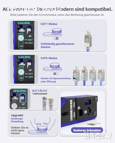 Съвместимост: RJ45 / RJ11 / RJ12