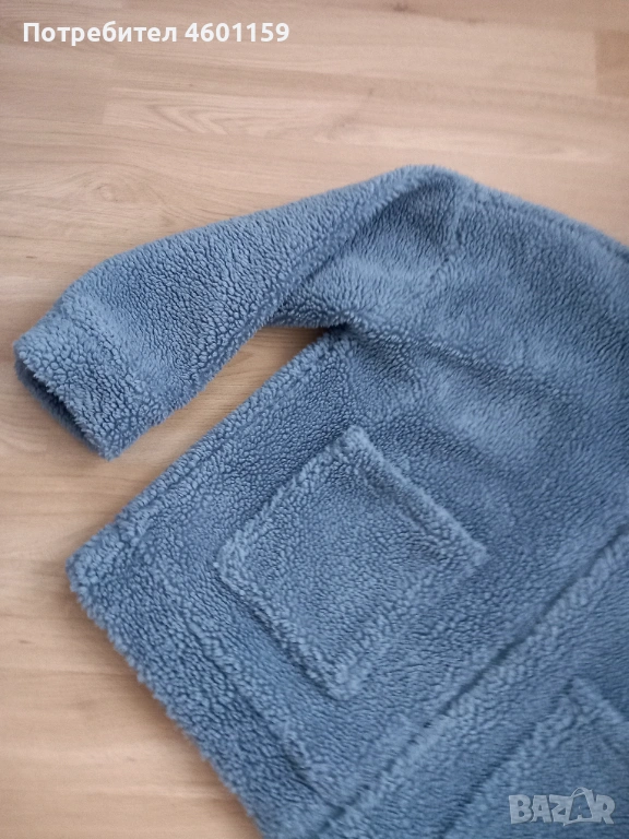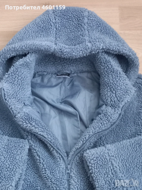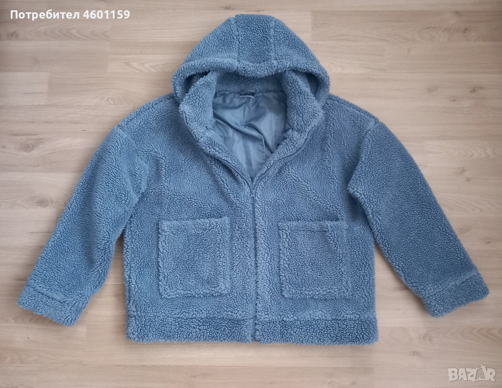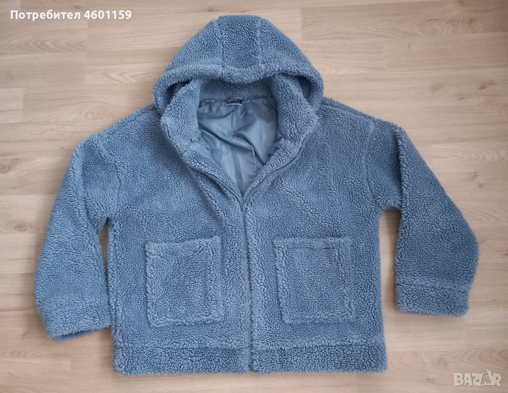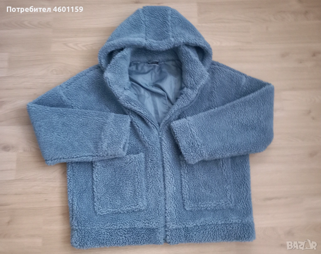 Стилно дамско яке с качулка в син цвят. Качествена и мека топла материя. Размер подходящ за L/XL .В отлично състояние, чисто, кратко използвано