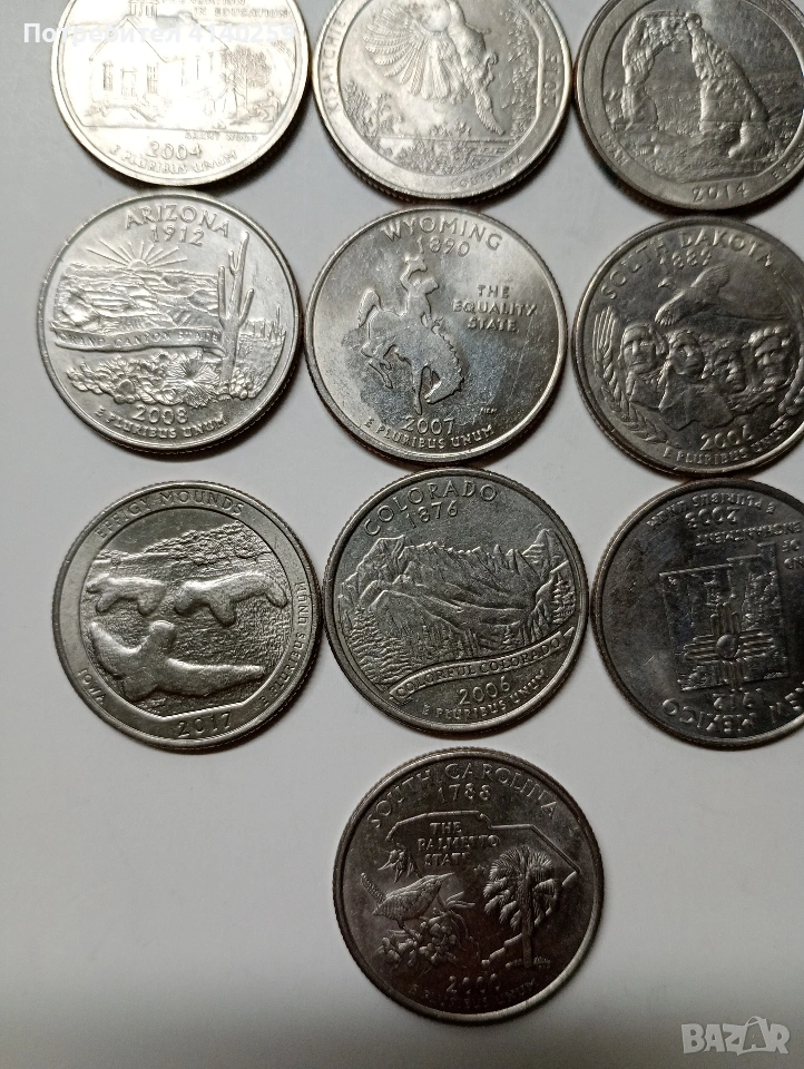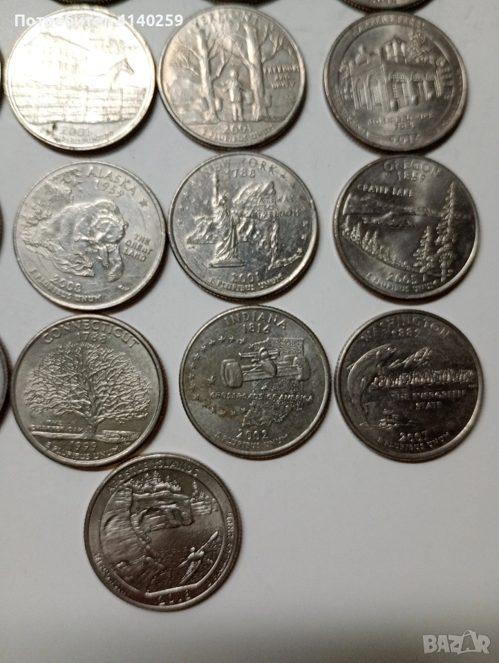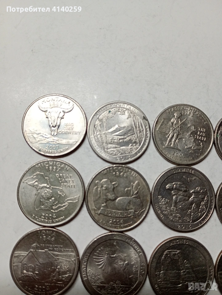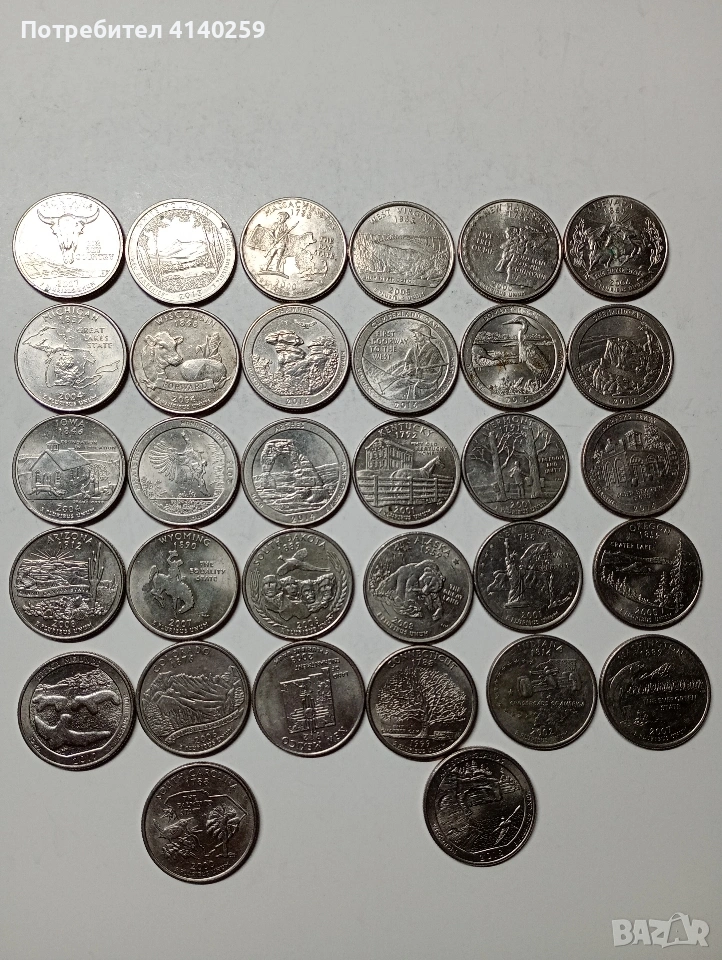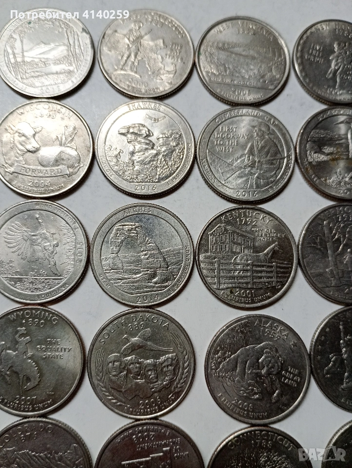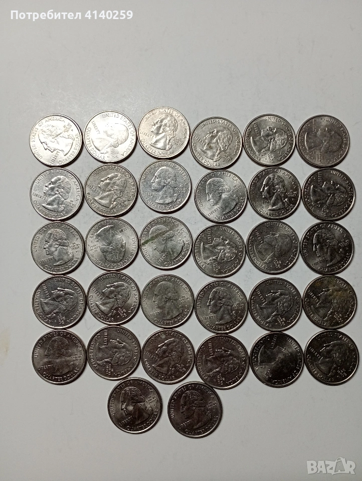 САЩ МОНЕТИ 1/4 КУОРТЪР ДОЛАР ( ЧЕТИ ОПИСАНИЕТО) РАЗЛИЧНИ ЩАТИ НЕПОВТАРЯЩИ ЦЕНА ЗА 32 БРОЯ НЕЧИСТЕНИ СЪСТОЯНИЕ ВИДИМО ПОЛУЧАВАТЕ СНИМАНИТЕ МОНЕТИ РАЗГЛЕДАЙТЕ ДРУГИТЕ МИ ОБЯВИ ДА КОМБИНИРАТЕ ДОСТАВКА ЕКОНТ ЗА ВАРНА ЛИЧНО