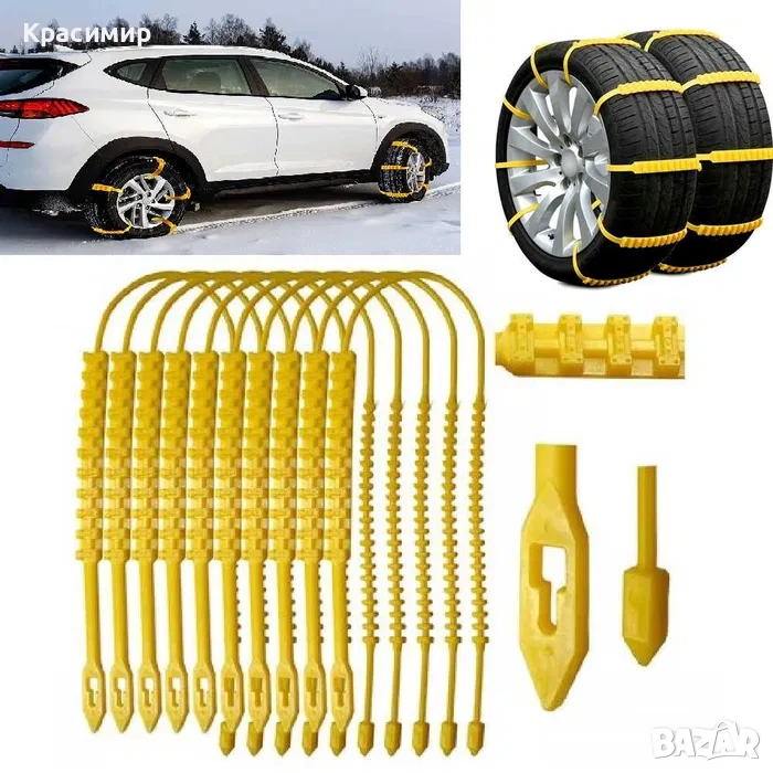 Тези вериги са направени от устойчив PVC материал и са създадени за многократна употреба, осигурявайки по-добро сцепление при сняг, лед и кал. Изработени в ярък жълт цвят за по-добра видимост, те са лесни за поставяне и сваляне, и са съвместими с гуми от 14 до 19 цола, което ги прави подходящи за различни автомобили.