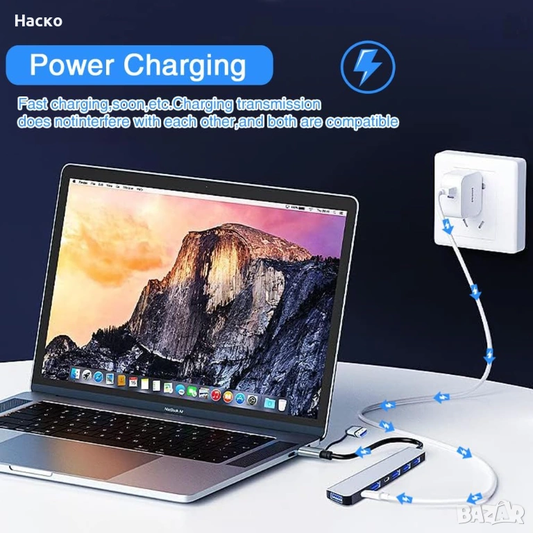 зареждане, 1 PD 5W порт, 1 порт тип C. USB 3.0 порта прехвърля данни със
