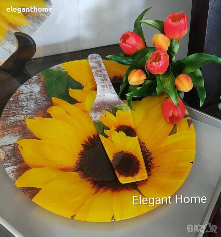 Стъклена чиния 30,5 см и шпатула → Обява 53442147