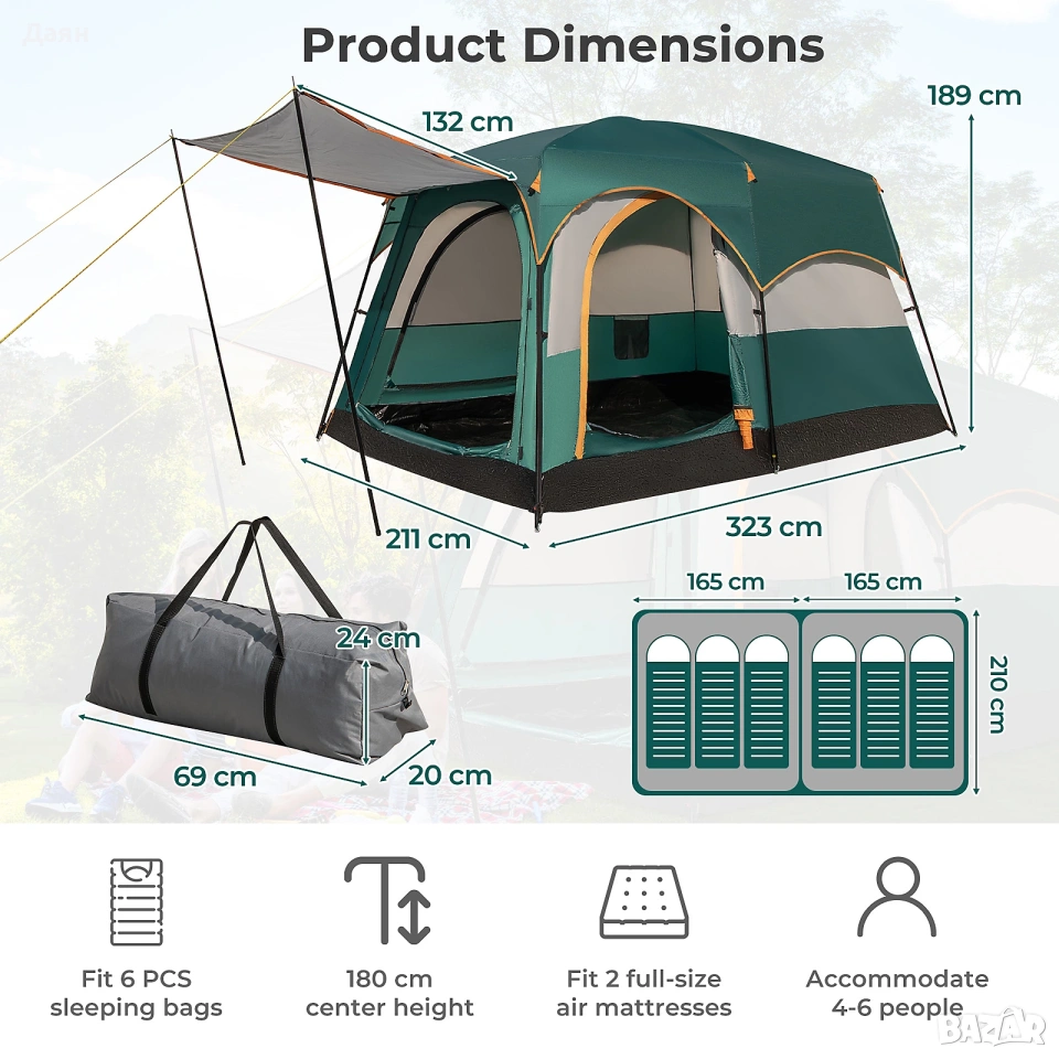Къмпинг палатка COSTWAY за 6 души, двуслойна кабина, водоустойчива → Обява 53442264
