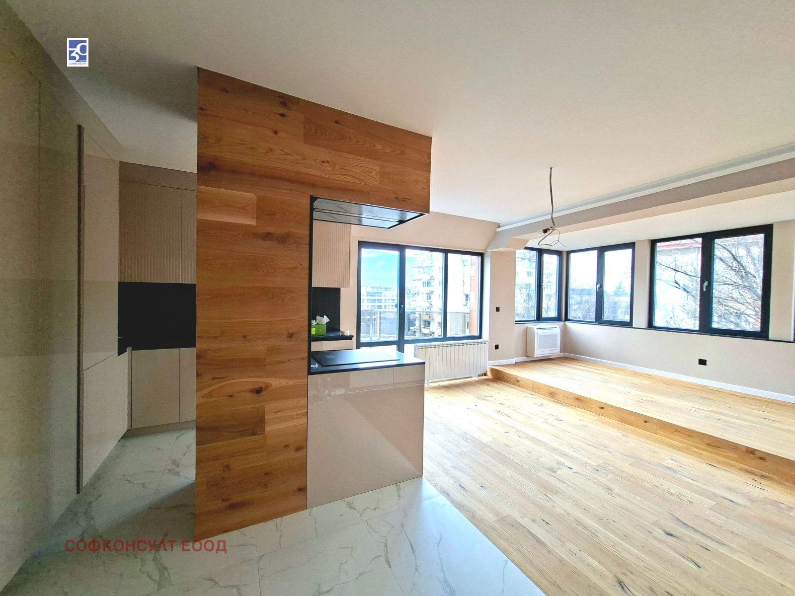 - всекидневна с кухненски бокс с излаз на две тераси с благоприятно изложение и панорама към Витоша