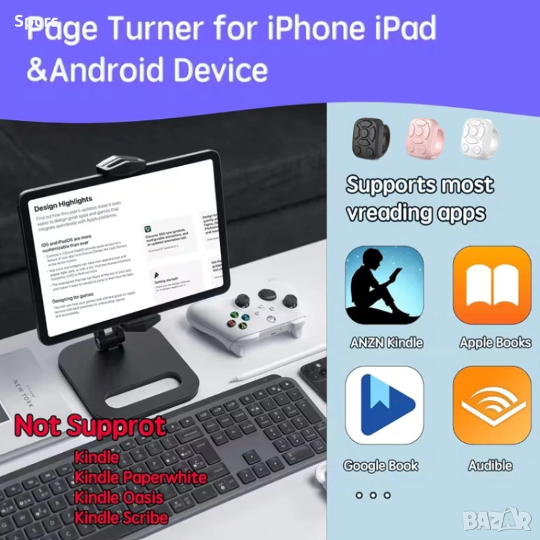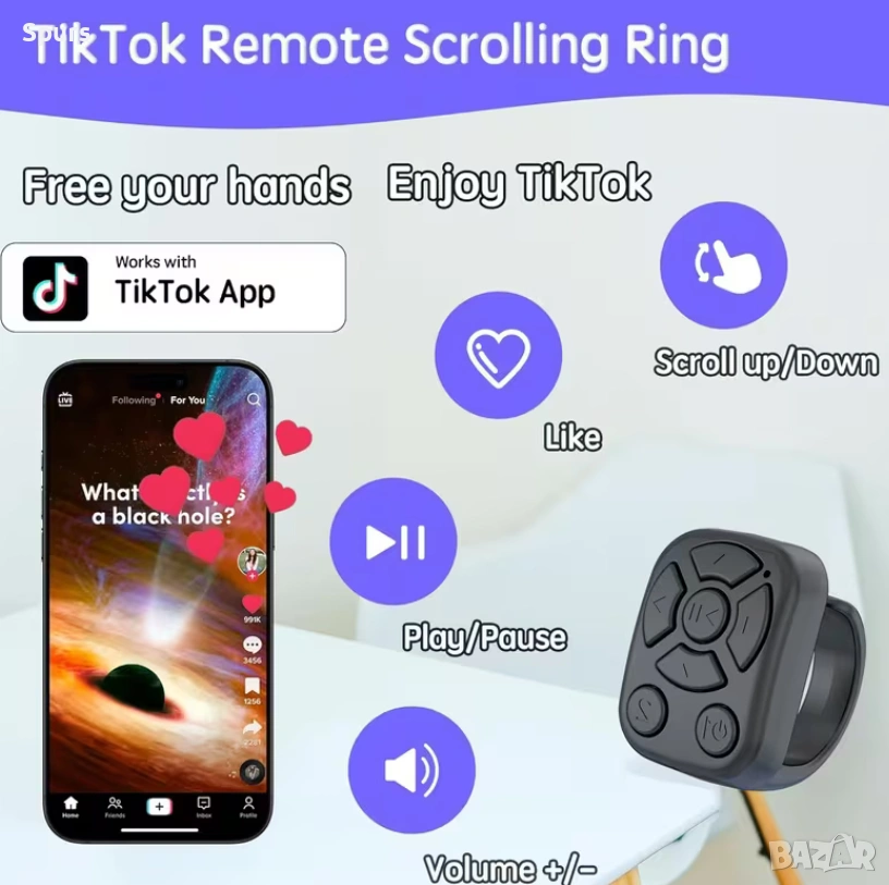 Безжичен умен пръстен с Bluetooth, който позволява удобно управление на смартфон или таблет без да докосвате екрана.