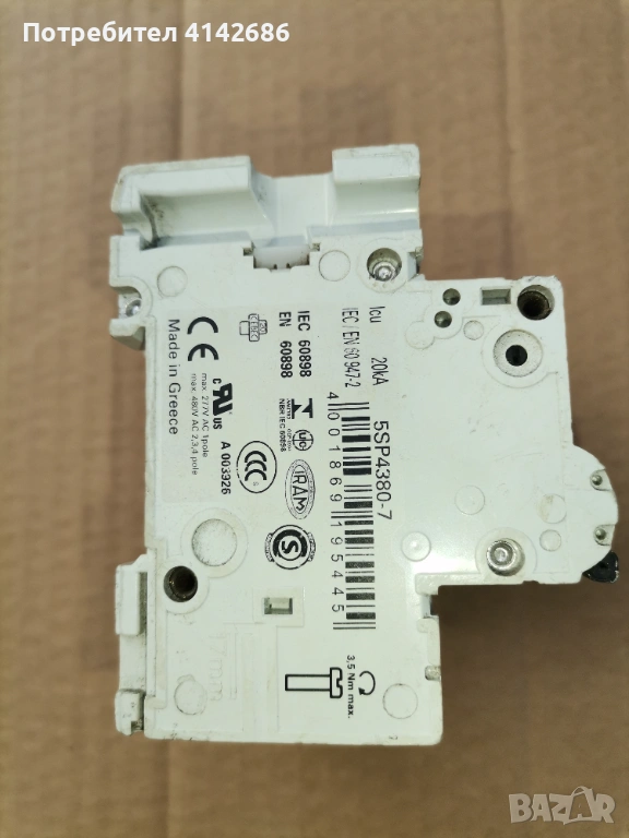 Здравейте, продавам автоматичен предпазител SIEMENS 5SP43, MCB, C80, 80A, 10 kA, 3P. Цена 10 евро.