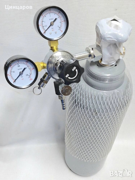 Бутилка въглероден диоксид CO2 и регулатор за газиране бира, напитки