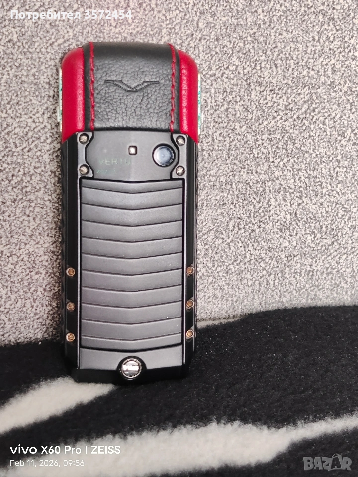 Vertu Ascent Ferrari ,купуван нов от Швейцария, неразличим от нов, ползван е година и половина като 2-ри телефон,не е употребяван от 5-6год. Не пазя оригиналната кутия, но има ориг.зарядно. Може по кода да се провери античността,както и по стикера под батерията.