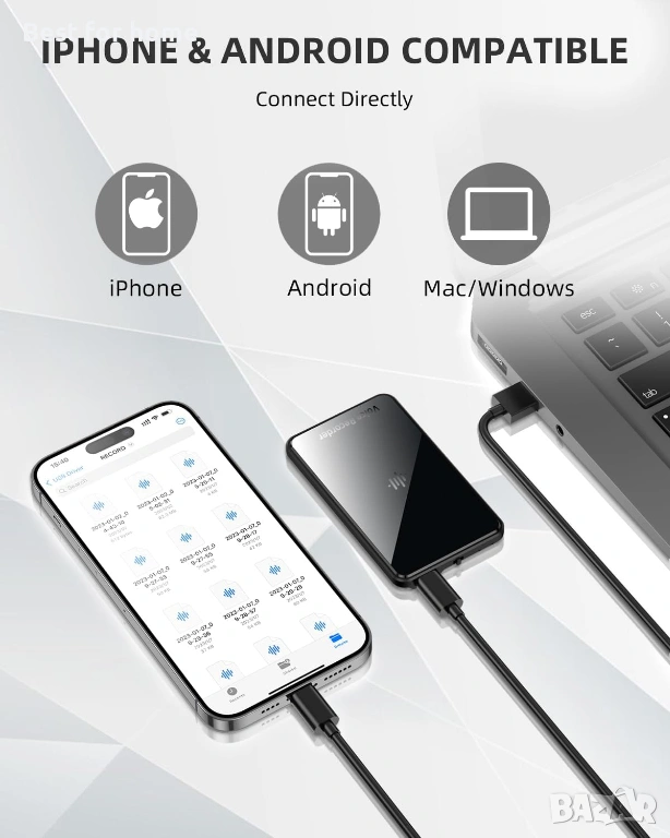 【Универсална интеграция】Това устройство гениално интегрира жака за слушалки и порта за зареждане в един интерфейс, осигурявайки удобството и на двете функции, без да е необходим компютър. Наслаждавайте се на директно възпроизвеждане на вашите записи без усилие. Освен това, безпроблемното прехвърляне на файлове и функционалността за възпроизвеждане се постигат чрез свързване на рекордера към вашия компютър чрез USB кабел. Освен това, той разполага със стандартен 3,5 мм жак за разширени възможности за свързване.