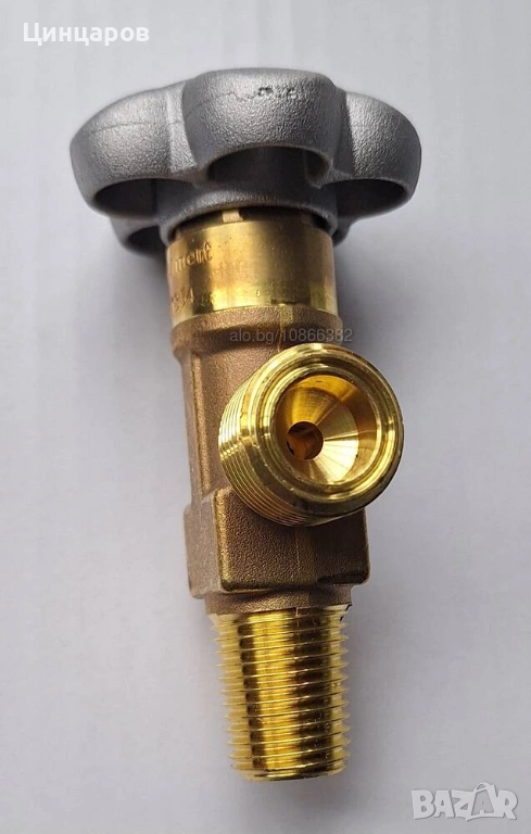 Бутилка кран малък конус 17мм.основа, технически газове аргон, коргон, хелий