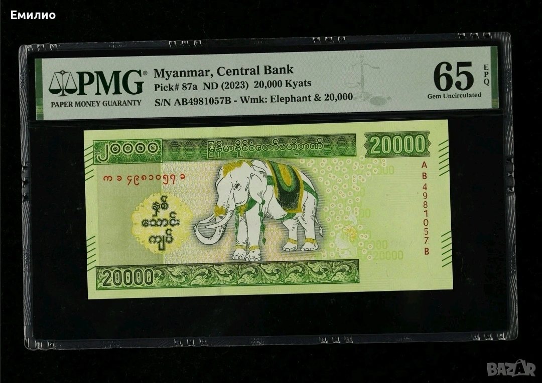 20000 KYATS ND 2023 год. Банкнотата с голям номинал.