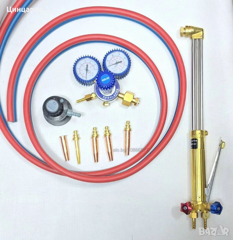Резак дължина 50см, маркуч сдвоен 5м, дюзи 4бр, редуктор газ и О2