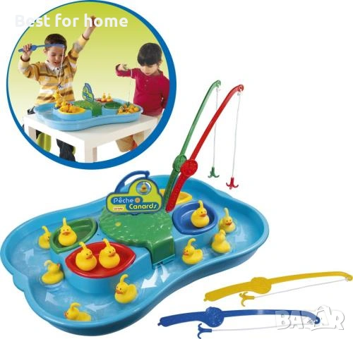 Забавлявайте се с пълната си игра за риболов на патици. Използвайте коритото с циркулираща вода и бъдете първият, който ще хване най-много патици, за да спечели играта.