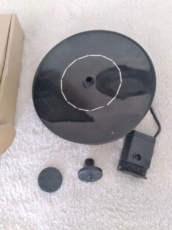 Соларен фонтан с три режима на разпръскване Декоративен соларен фонтан, идеален за градински езера, фонтани, басейни и водни съдове. Работи изцяло със слънчева енергия – без нужда от кабели и електричество. Фонтанът разполага с три различни режима на разпръскване на водата, които създават красив воден ефект и придават уютна атмосфера на всяко външно пространство. Характеристики: Захранване: соларен панел 3 режима на водна струя Лесен монтаж – просто поставяте във водата Без кабели и допълнителни разходи за ток Предимства: Енергоспестяващ и екологичен Подходящ за двор, градина, езеро или басейн Подобрява циркулацията на водата Създава декоративен и релаксиращ ефект Доставка с Еконт с опция преглед и тест до 3 работни дни.