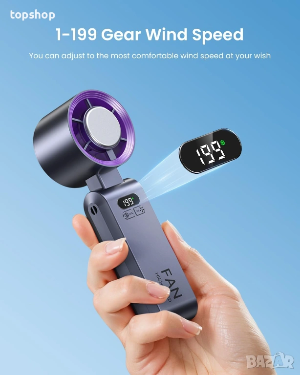 199 степени на скорост: Уникален контрол – можете да регулирате силата на вятъра прецизно от 1 до 199 чрез вградения бутон.