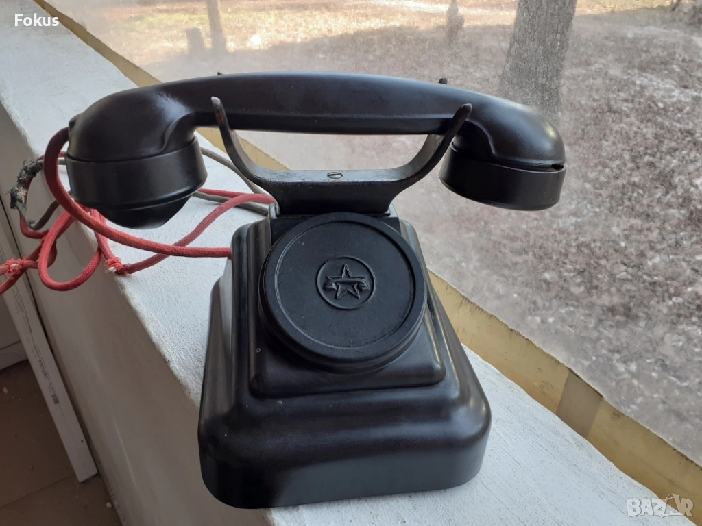 Много рядък модел, произведен в Съвенския Съюз през 1951 г. Този телефон е бил предназначен за вътрешна комуникация в промишлени фабрики и ведомствени и военни организации от рода на КГБ.