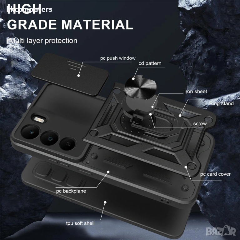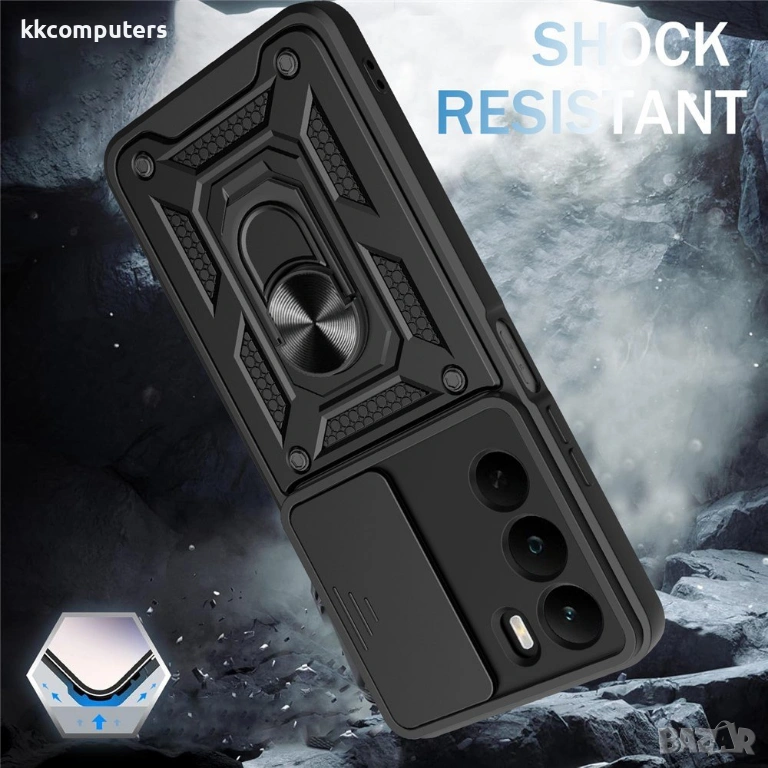 Изберете калъфа с въртяща се стойка и плъзгащо капаче за камера, за да получите военна защита, гъвкавост и иновативни функции за вашия Realme C71 4G.