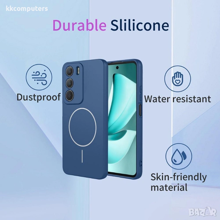 Магнитният калъф за Realme C71 4G съчетава мекотата на течния силикон със здравината и гъвкавостта на висококачествен TPU материал. Със своята подобна на кожа, мека текстура и вграден магнитен пръстен, този тънък гръб калъф предлага не само сигурна защита от падания и надрасквания, но и съвместимост с магнитни стойки за кола и стендове. Комплектът включва скрийн протектор за пълна защита на екрана.