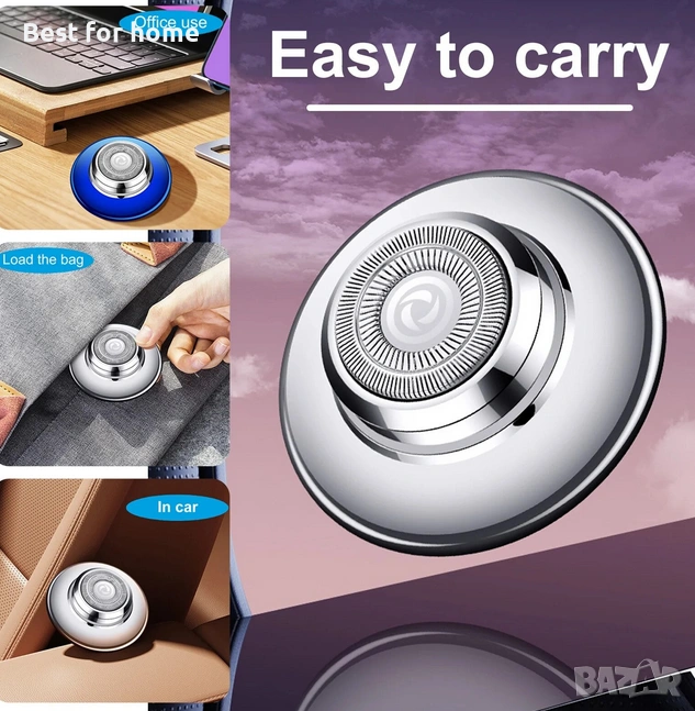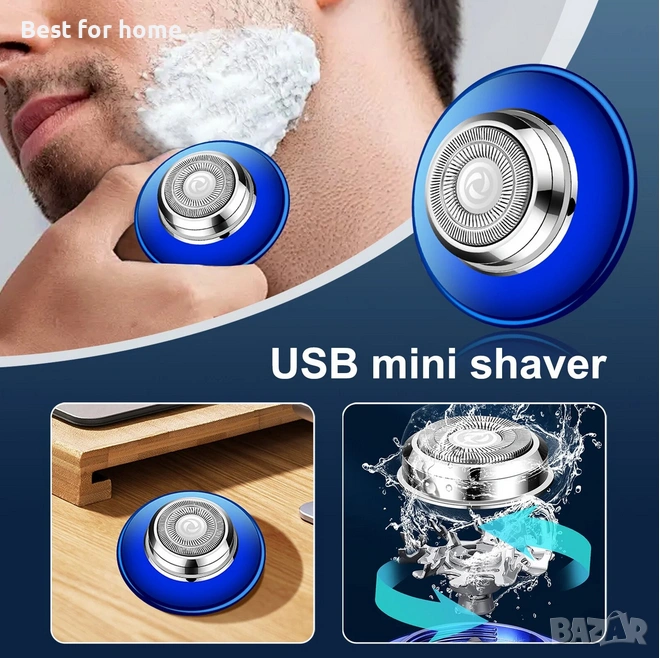 Електрическа самобръсначка, мини, преносима, USB, 6.4x6.4x3.1 см, за мокро и сухо бръснене