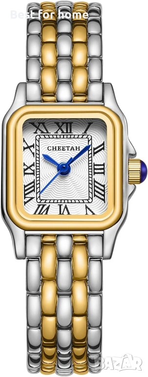 Дамски златни часовници CHEETAH с малка винтидж гривна, правоъгълен корпус, римски циферблат