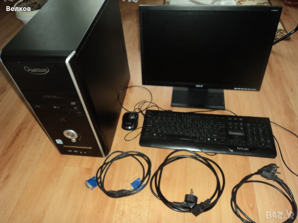 Компютър двуядрен, монитор, клавиатура, мишка, кабели