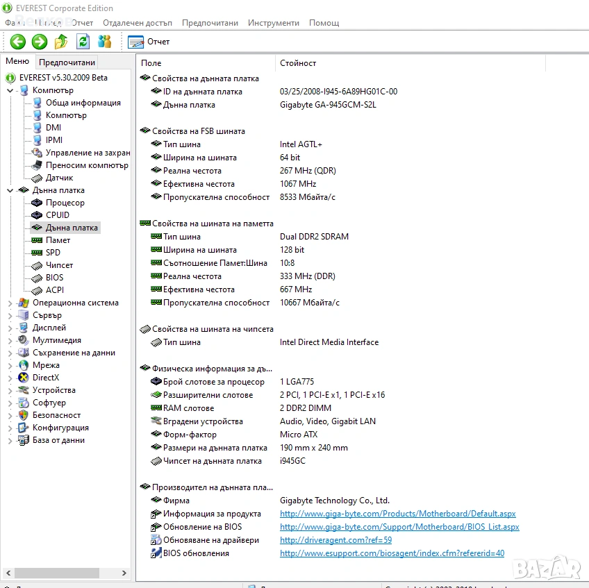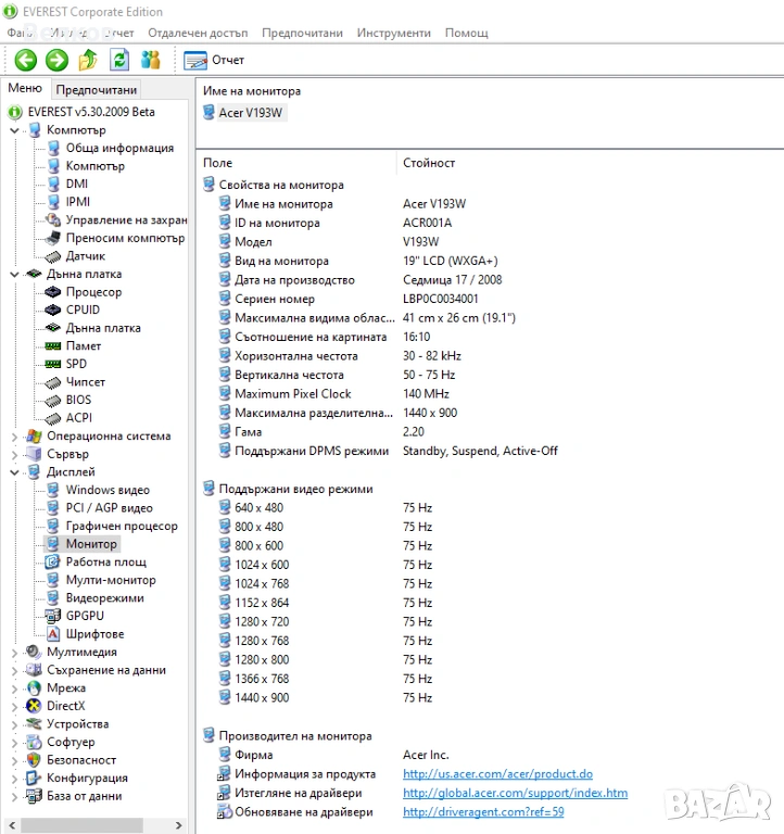 Параметри и данни извлечени с Еverest: