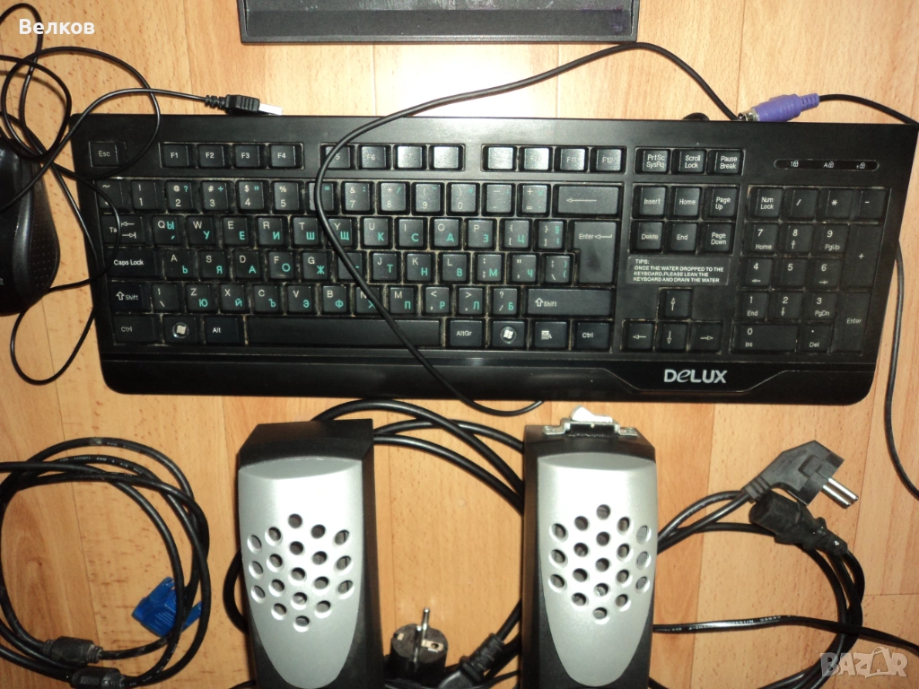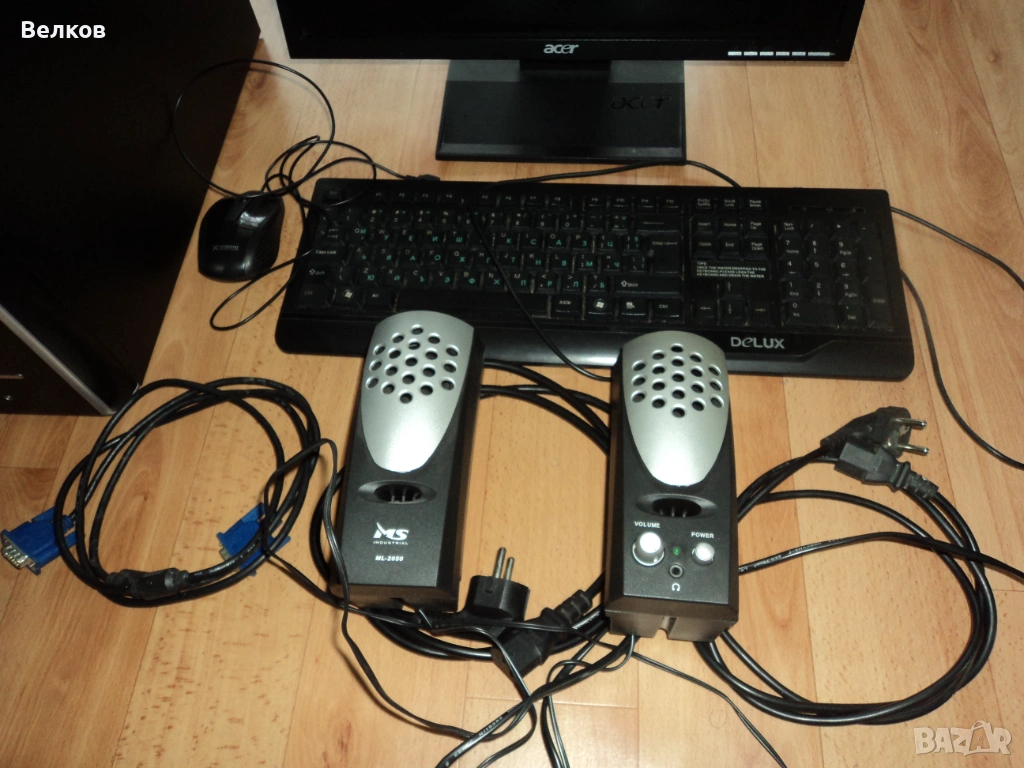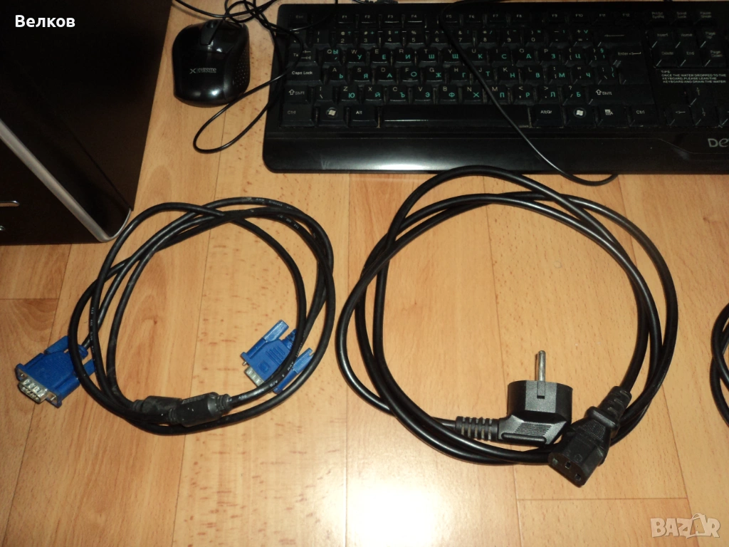 Компютър двуядрен, кабели, монитор, клавиатура, мишка,