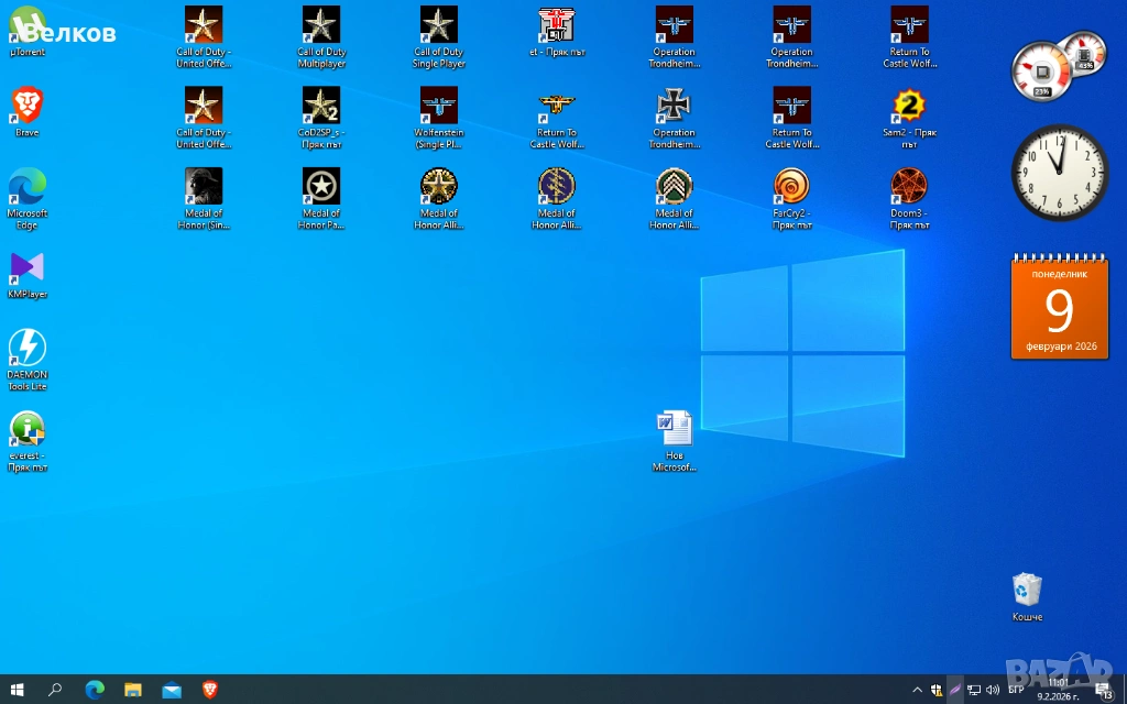 Word Document, µTorrent, DAEMON Tools Lite, Brave-браузър, KMPlayer, Еverest и