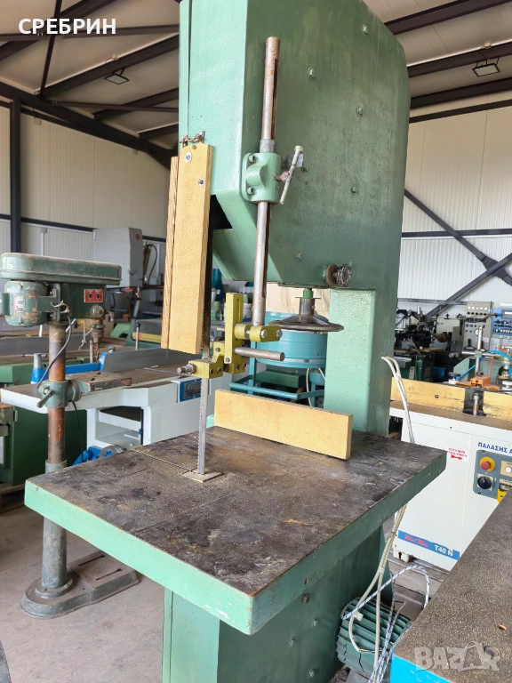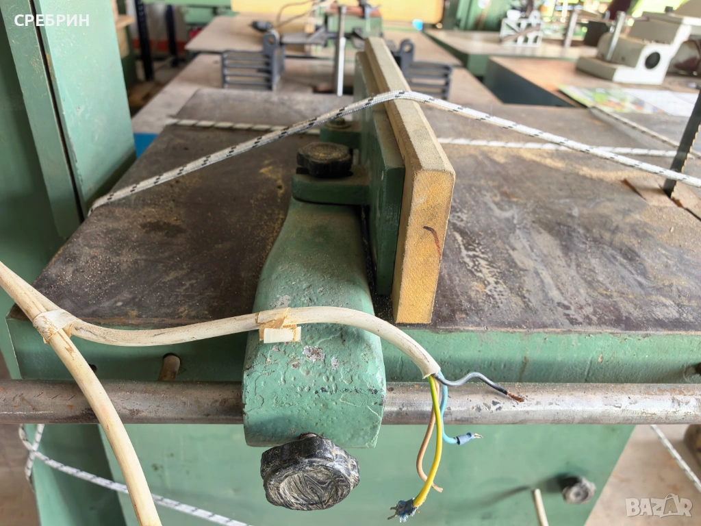 В наличност Гръцки банциг на 700 мм с 3 кв мотор трифазен , височина на машината 2400 мм, за информация само по телефона 08******02 Сребрин Петров адрес село Черганово на 2 км от Казанлък срещу фабрика за дървени къщи ECOZID darvodelskimashini.alle.bg.