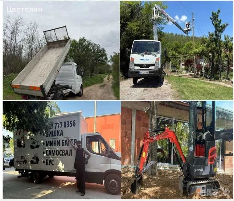 Услуги със – самосвал, мини багер, автовишка, бус, подемник - хаспел