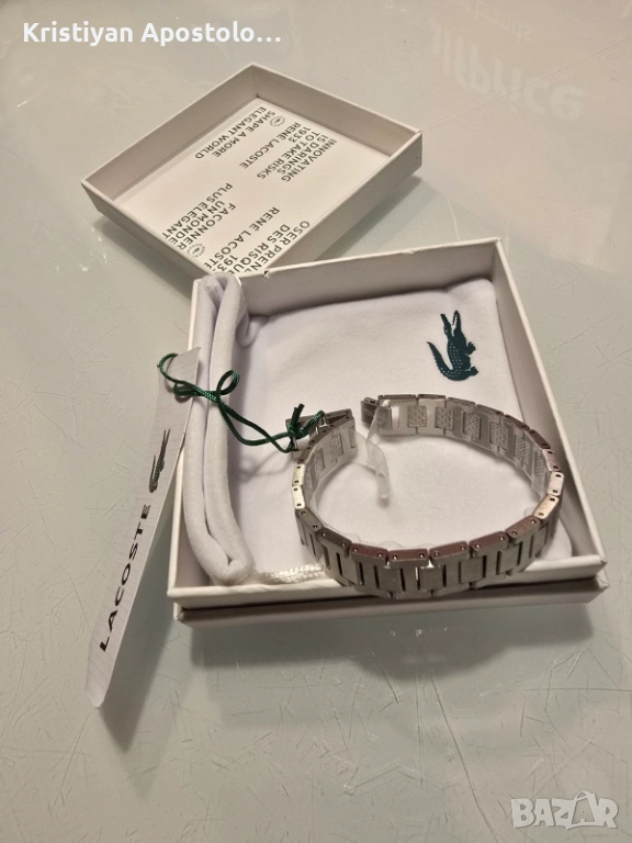 Тази елегантна гривна е изработена от висококачествено сребро и впечатлява с изчистен, модерен дизайн, който лесно се комбинира с всяка визия – от ежедневна до официална. Фините линии и характерното лого на Lacoste придават усещане за престиж и стил, които никога не излизат от мода. Тази близко до оригинала гривна, е не просто аксесоар – тя е израз на отношение, любов и специално внимание. Подходяща е както за мъж, така и за жена, които ценят марковите бижута и държат на изтънчения външен вид.
