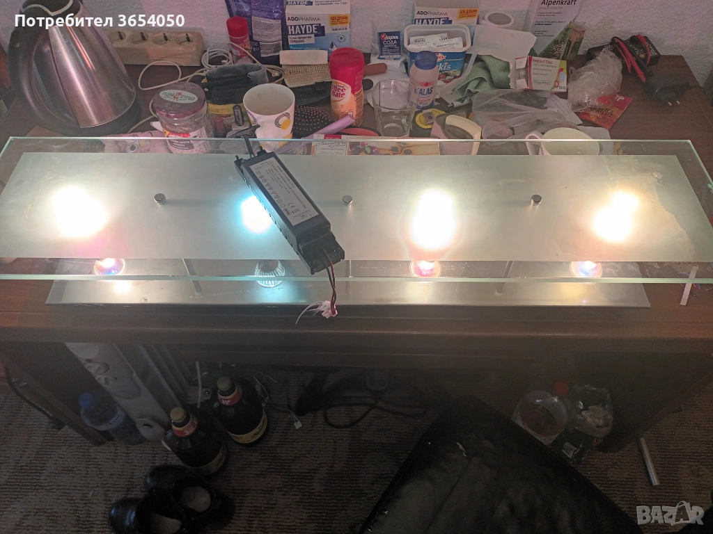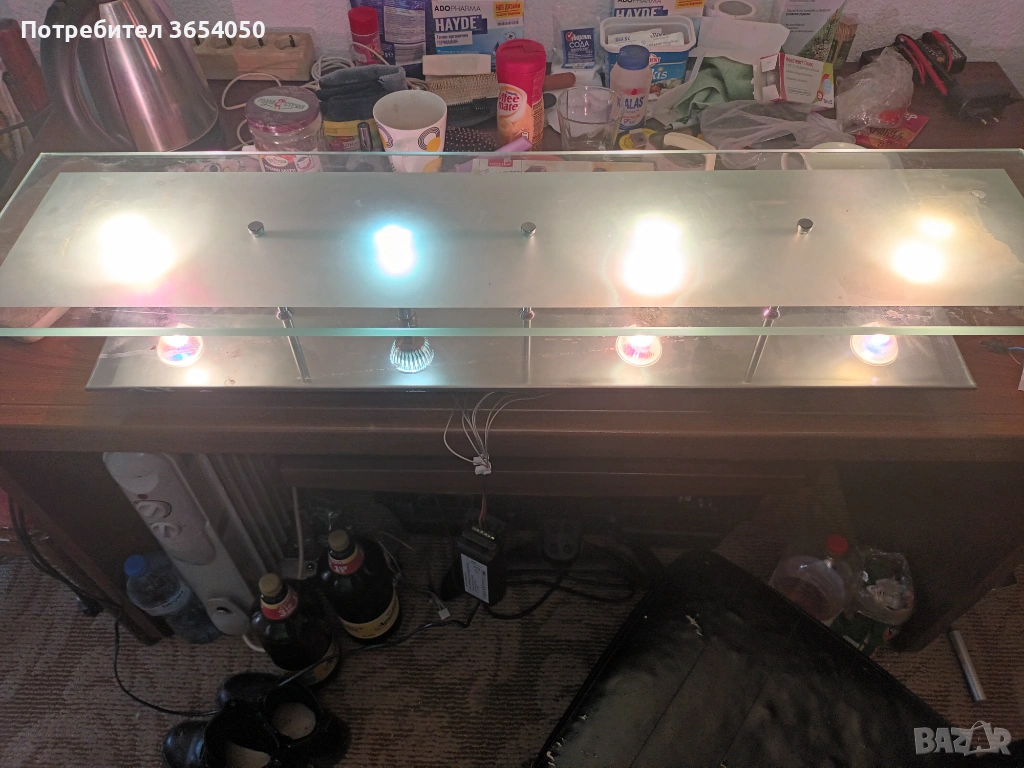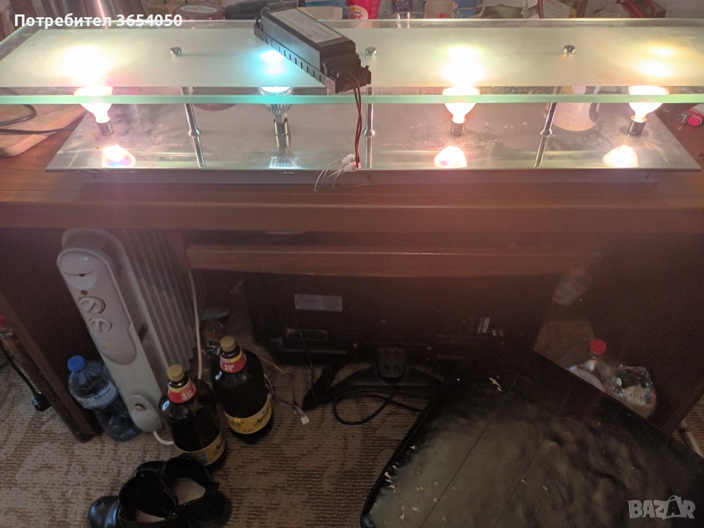 Осветително тяло със 4бр.12 волтови крушки продава се бес преобразувателя от 220 волта на 12 волта може и със него но цената е различна.договаряне