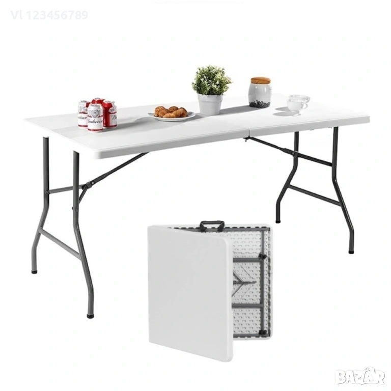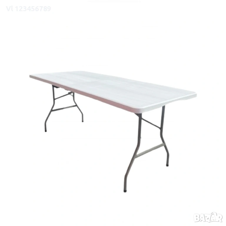 Сгъваема на две маса с размер 180 х 74 х 74 см – за комфортен отдих у дома или на село, отлична за къмпинг, пикник и весело хапване и пийване сред природата. Големите размери на масата спокойно могат да поберат около нея компания от максимум 8 – 10 човека.