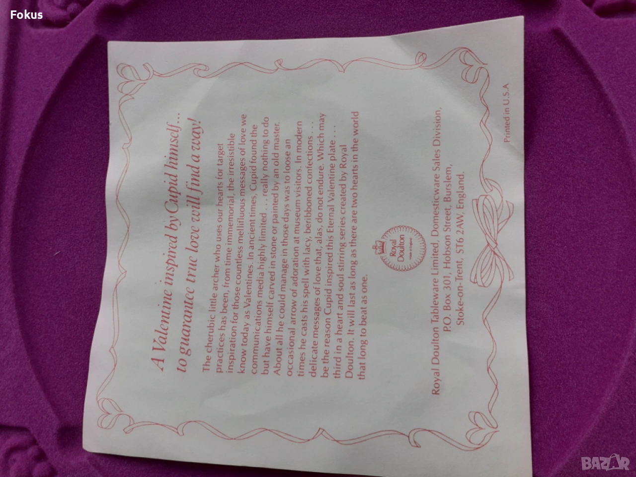 Колекционерска чиния Royal Doulton Valentines Day порцелан, снимка 1 - Антикварни и старинни предмети - 53444793 Колекционерска чиния Royal Doulton Valentines Day порцелан, снимка 2 - Антикварни и старинни предмети - 53444793 Колекционерска чиния Royal Doulton Valentines Day порцелан, снимка 3 - Антикварни и старинни предмети - 53444793 Колекционерска чиния Royal Doulton Valentines Day порцелан, снимка 4 - Антикварни и старинни предмети - 53444793 Колекционерска чиния Royal Doulton Valentines Day порцелан, снимка 5 - Антикварни и старинни предмети - 53444793 Колекционерска чиния Royal Doulton Valentines Day порцелан, снимка 6 - Антикварни и старинни предмети - 53444793 1/6