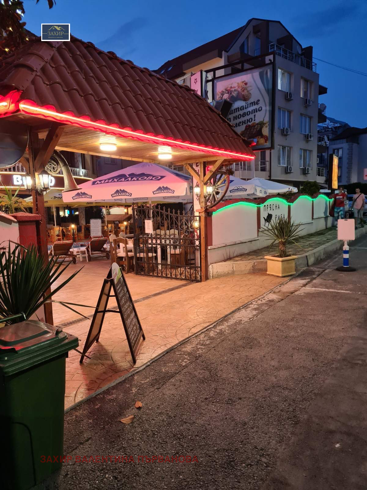 - Първи етаж - ресторант. Напълно оборудван и обзаведен. Кухня. Рецепция.