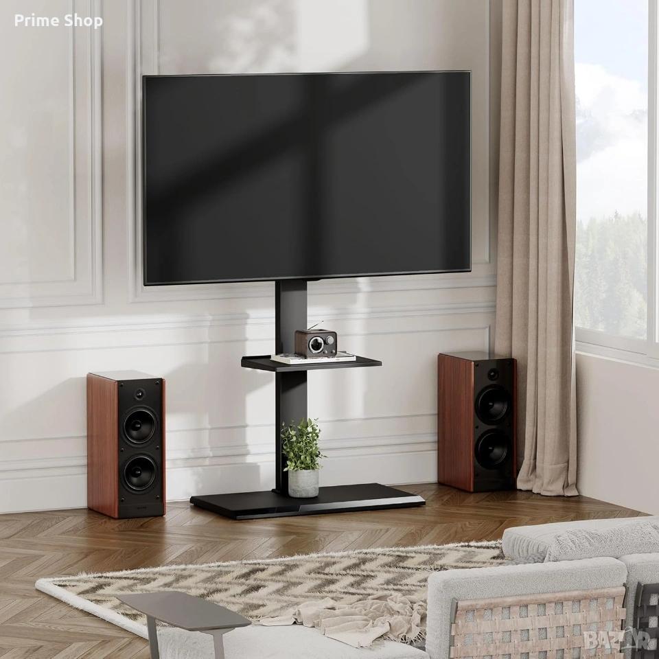 стойка за телевизор, подова стойка за TV, FITUEYES, VESA стойка, метална стойка за телевизор, стойка 65 инча, стойка 75 инча, въртяща се стойка, TV stand black, интериорни решения.