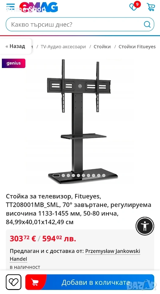 Стойката за телевизор FITUEYES предлага надеждно и гъвкаво решение за позициониране на екрани с големи размери (от 50 до 80 инча), без необходимост от пробиване на стени. За разлика от моделите със стъклена основа, този продукт се отличава с изцяло метална конструкция и масивна желязна база ("Iron Base"), гарантираща изключителна устойчивост и безопасност. Дизайнът е оптимизиран за функционалност, позволявайки прецизно настройване на ъгъла на виждане и височината, като същевременно осигурява естетичен и подреден вид на пространството.