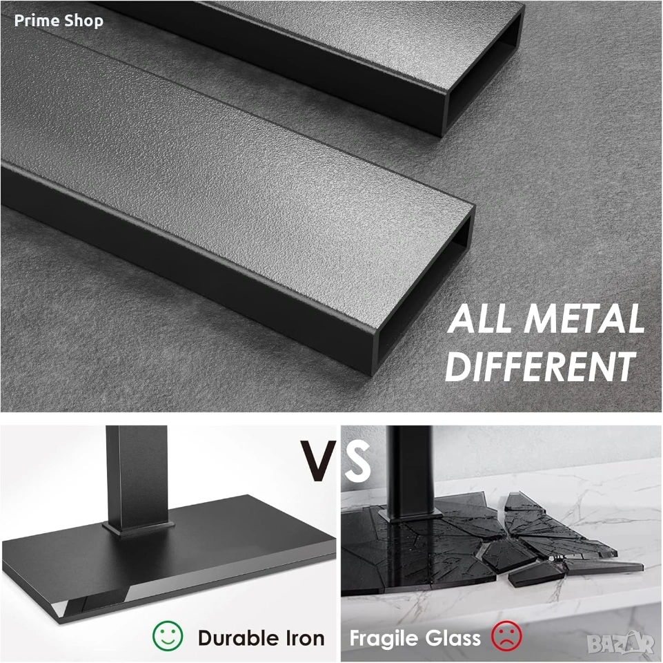 * Устойчива метална конструкция: Основата, централната колона и рафтът са изработени от плътна стомана. 20-милиметровата желязна база елиминира риска от счупване, характерен за стойките с закалено стъкло, и осигурява стабилност дори при максимално натоварване.