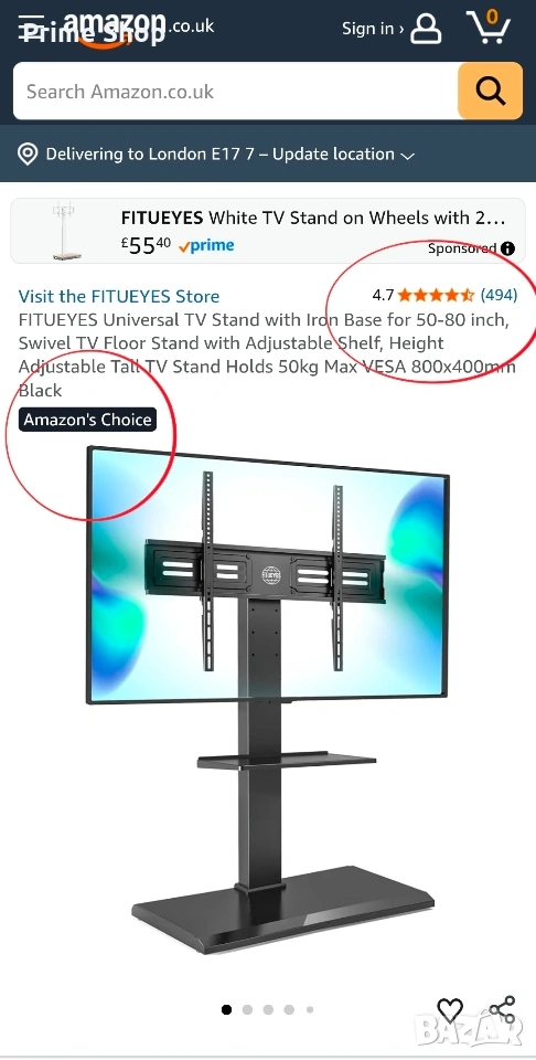 Продуктът е отличен с етикет "Amazon's Choice" и поддържа висок потребителски рейтинг от 4.7 от 5 звезди в платформата Амазон, което свидетелства за качеството на изработка и удовлетвореността на клиентите.