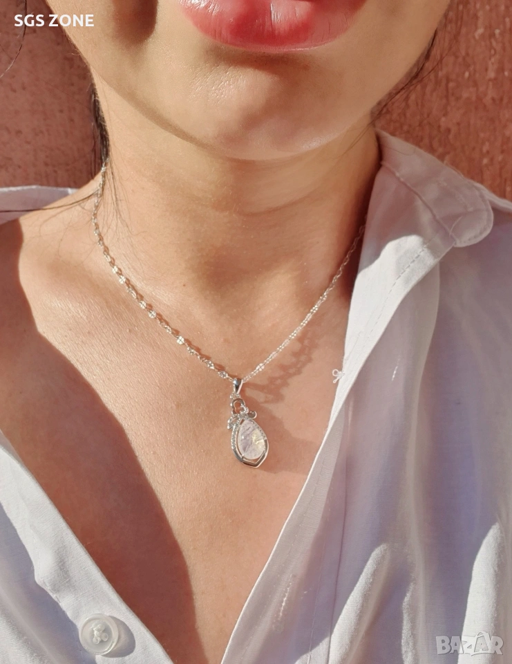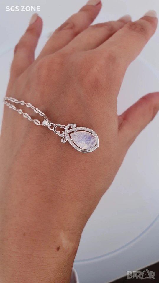 Сребърна висулка с лунен камък от Тайланд. Още снимки и видеа на продукта в Instagram и Facebook sgs.zone, уебсайт sgs.zone. Можем да изпратим допълнителна информация чрез Viber. Изпращане Speedy и Эконт. Шоурум в София, Дондуков, 53. Всички продукти са със сертификати и подаръчна кутия. Продукти имат допълнителни български маркировки