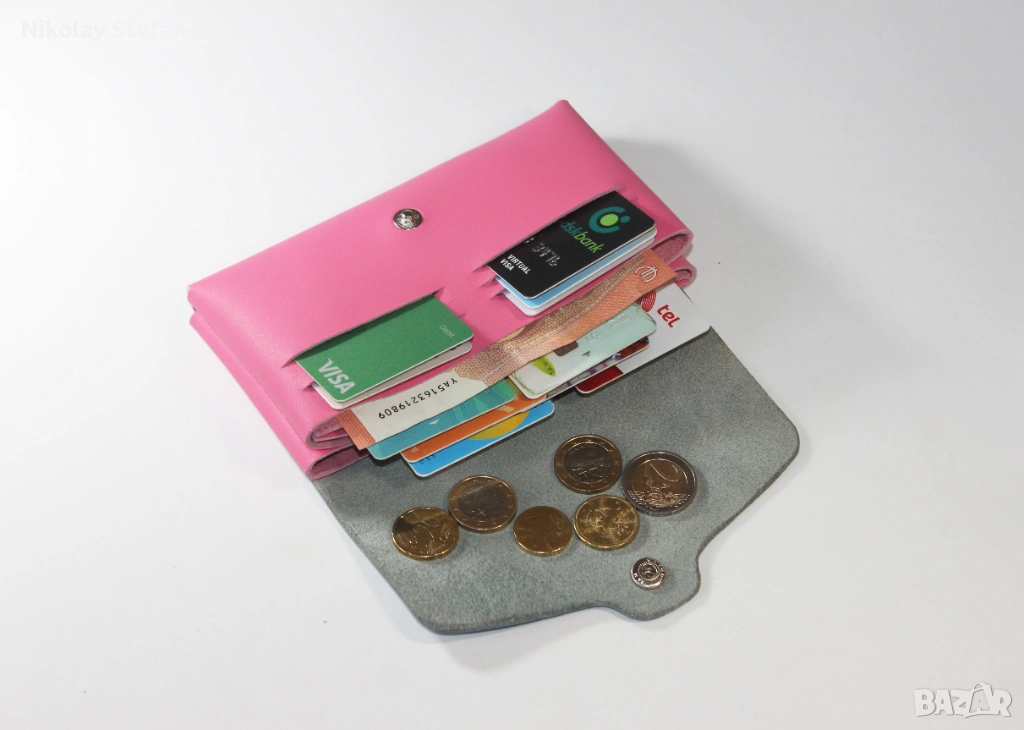 - Разполага с 6 слота за карти, които побират до 12 карти, 2 големи отделения за банкноти, отделение за монети и 2 допълнителни отделения за карти и бележки