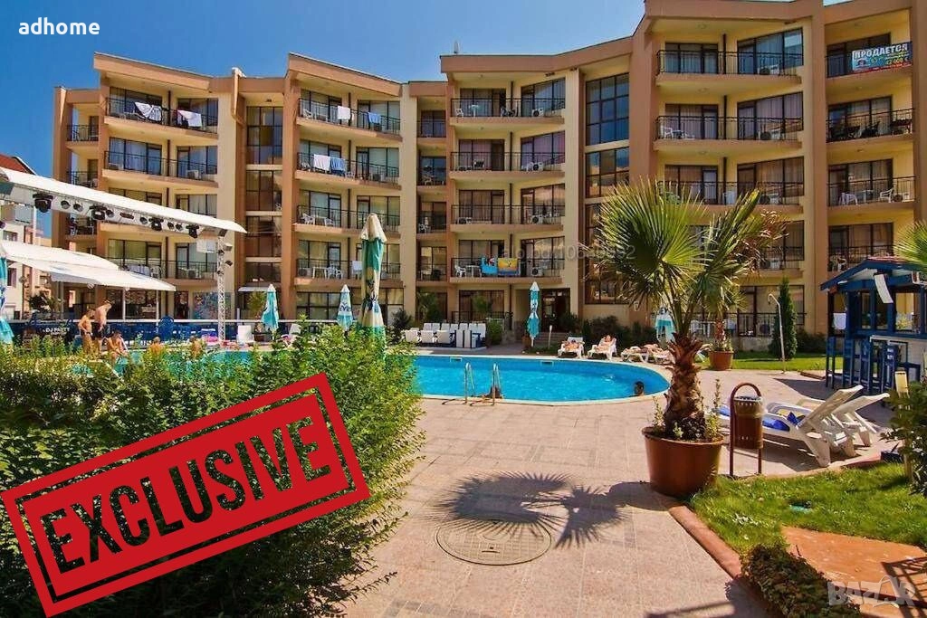 ~~ RU Агентство недвижимости «A& D HOME» - г. Несебр представляет Вашему вниманию, просторную двухкомнатную квартиру, расположенную в закрытом жилом комплексе, в отличном районе Солнечного Берега, в 5-7 минут пешеходно от пляжа.