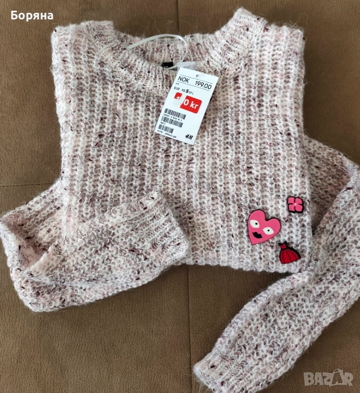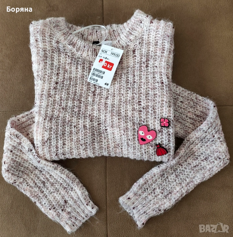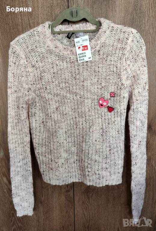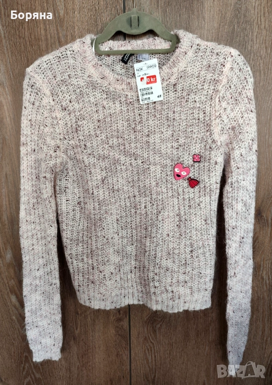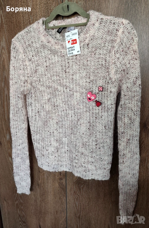 H&M, нов с етикет, красив пуловер в розов меланж, размер S,