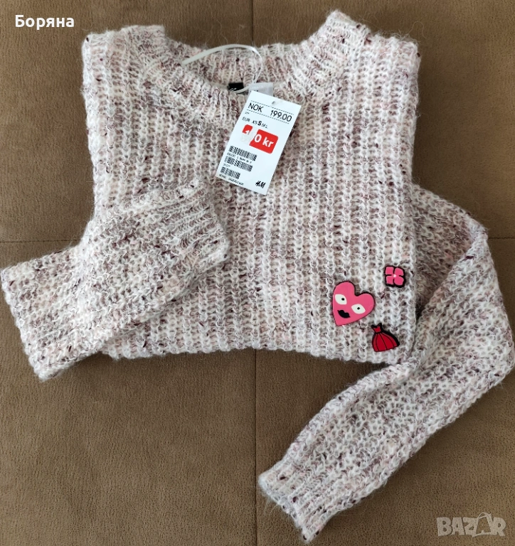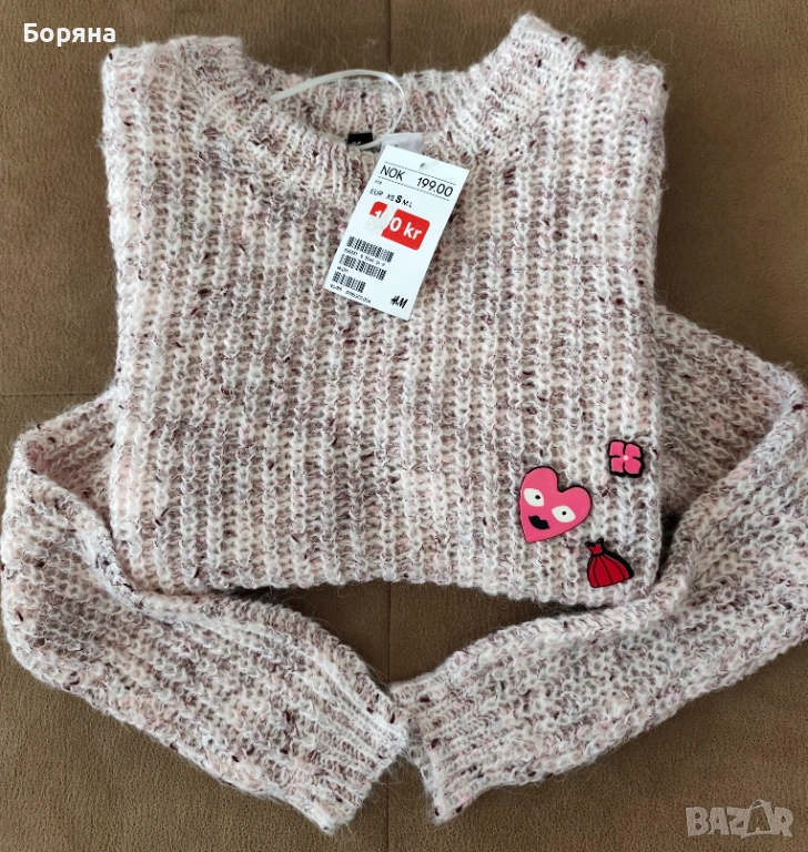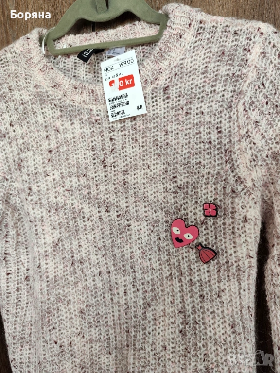 H&M нов с етикет пуловер розов меналж с брошки → Обява 53446207