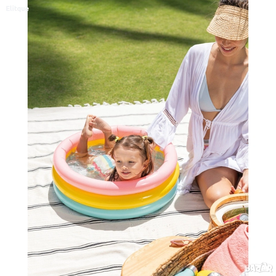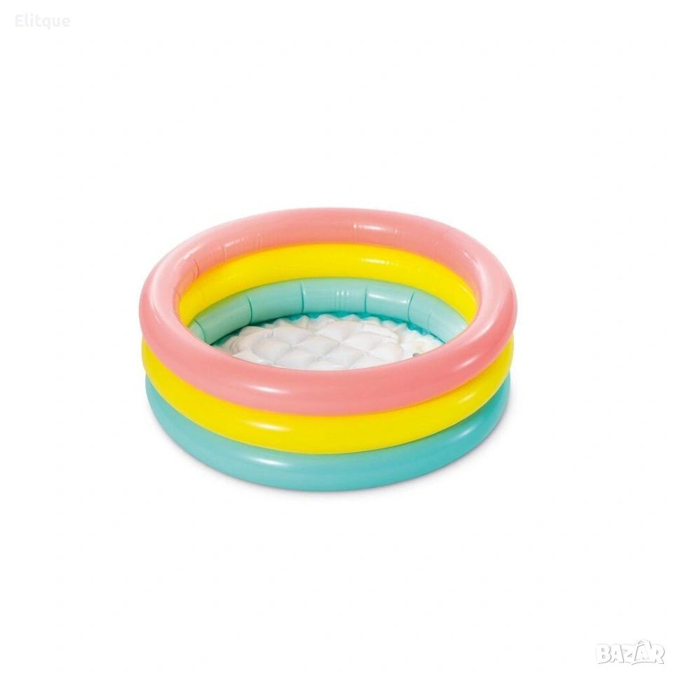 INTEX SUNSET GLOW BABY POOL ИНТЕКС НАДУВАЕМ БЕБЕШКИ БАСЕЙН Детският басейн Intex Sunset Glow Baby Pool е чудесен начин да избягате от летните горещини заедно с вашето малко дете. Той е оборудван с надуваемо дъно за по-голям комфорт при използване. Характеристики: 3 надуваеми въздушни камери Надуваемо меко дъно за допълнителен комфорт Размер: ∅ 61 х 22 см. Вместимост: 33 литра и дълбочина 14 см. Включена е лепенка за поправка За деца от 1 до 3 години.