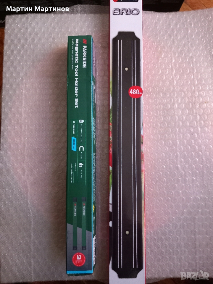 Нови Мощни Магнити PARKSIDE - Комплект от 2бр. Х 30см. - всеки държи до 5кг. - Идеални за Гаража , Работилницата и Домакинството - 8€ --- Кухненски Магнити BRIO - 48см. за ножове и др. - 6€.