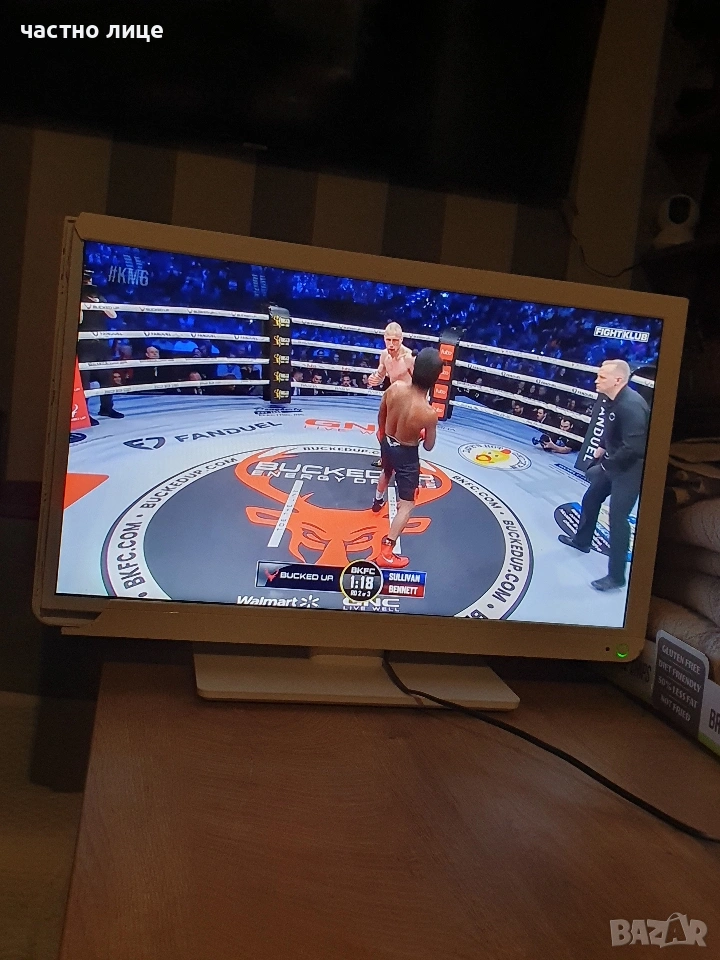 Телевизора работи отлично, забележката е счупено парче от рамката в лявата част. Има HDM, 2 USB, изход за слушалки и др. Може да се види след уговорка в кв. Левски във Варна. Има дистанционно, не оригинално. Има цифров тунер, работи директно на кабел, работи и само с антена, като се гледат 7-8 програми само с нея.